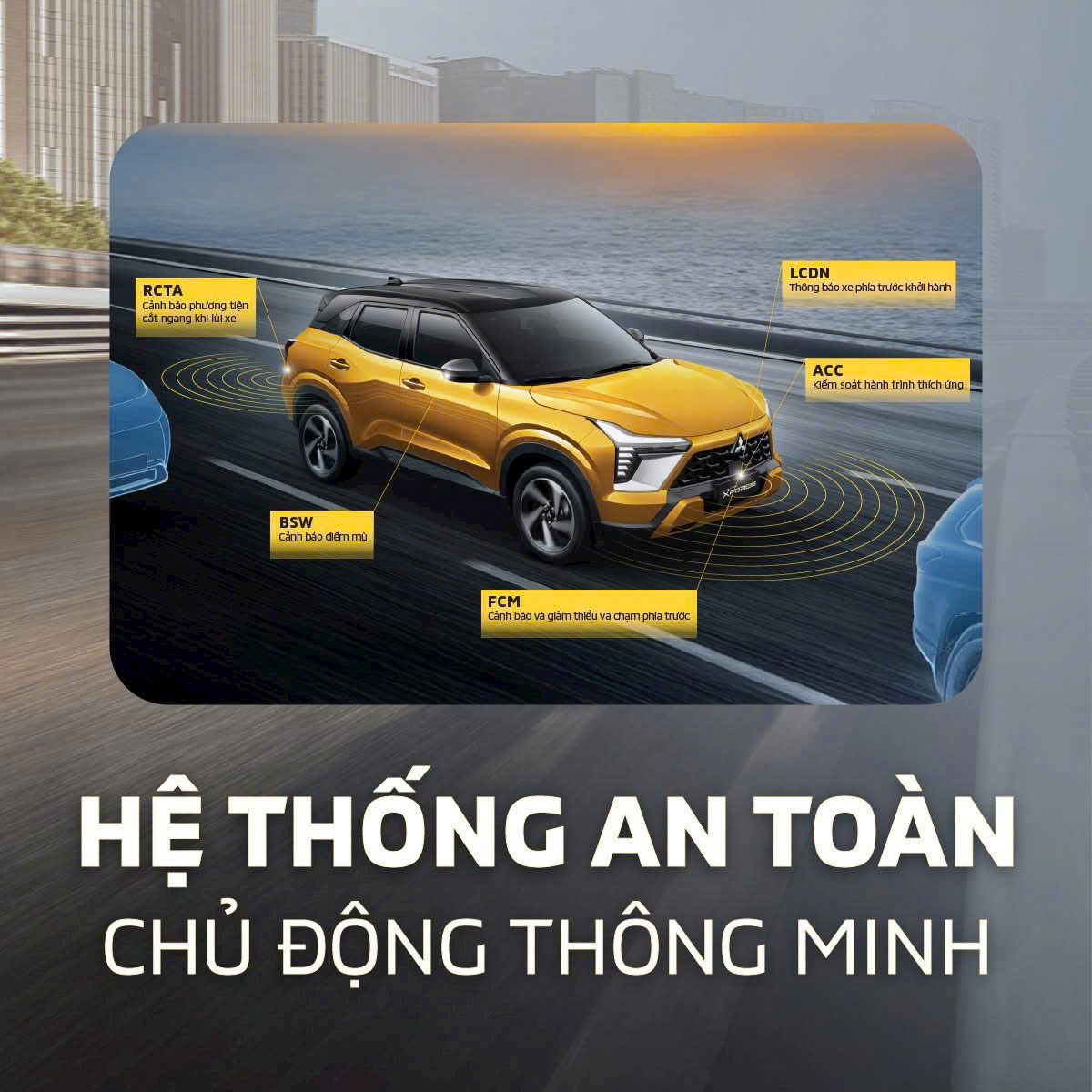 - Hệ thống an toàn Mitsubishi Motors Safety Sensing với 6 túi khí an toàn.